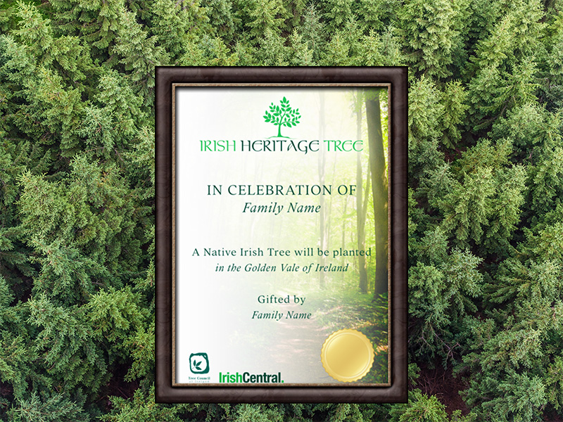 You will receive a certificate of dedication from IrishCentral and The Tree Council of Ireland